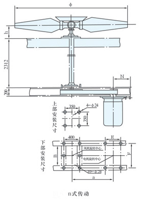 三、空冷器风机传动方式及安装结构尺寸