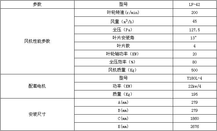 LF-42风机性能参数一览表